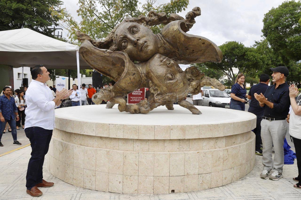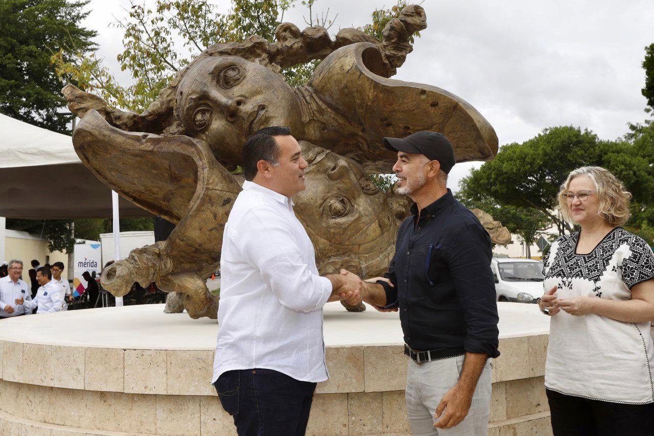 El alcalde Renán Barrera develó la escultura “Reflejo IV” donación del escultor Javier Marín