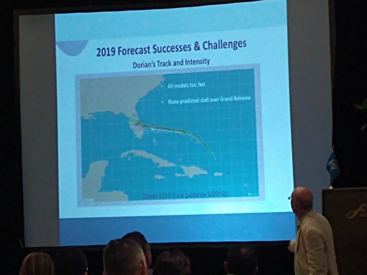 Expresó que, un pronosticador debe ser consecuente en su seguimiento y desarrollo de un fenómeno tropical, pero en esta ocasión, ninguno de los modelos oficiales pudo alcanzar a predecir la formación, crecimiento, desarrollo y ruta de Dorian.