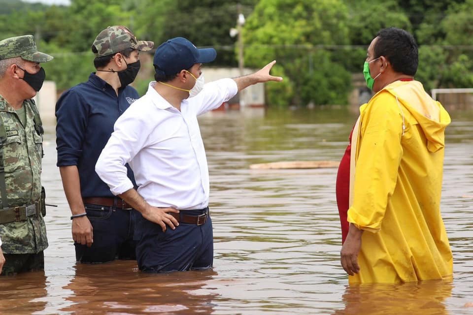 En su recorrido, el Gobernador recordó que los últimos 4 días ha caído el 40% de las lluvias que recibimos anualmente en el estado.