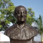 Autoridades culturales realizan una ofrenda floral en el parque «Teatro Regional».