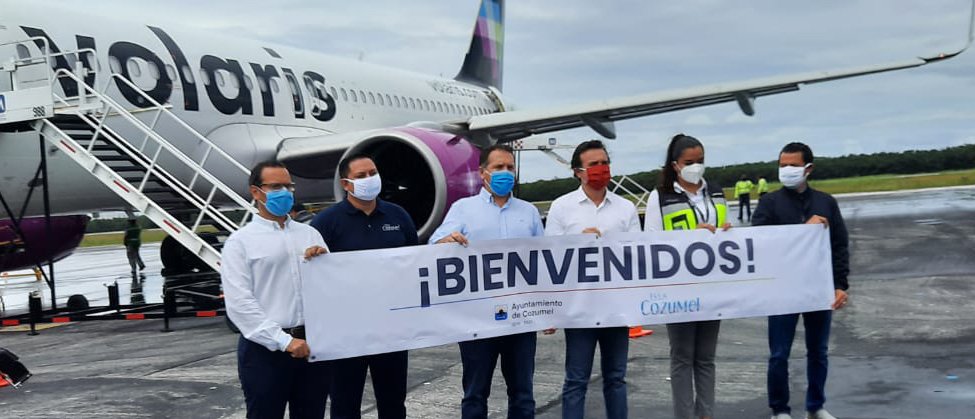 “El regreso de Volaris a Cozumel es una gran noticia que nos alegra mucho y que contribuye a la recuperación económica de la isla. Esperamos que la ruta sea muy exitosa y que la demanda vaya en aumento; queremos que le vaya muy bien a Cozumel y a Volaris”, comentó el Ing. Darío Flota Ocampo, director general del CPTQ.