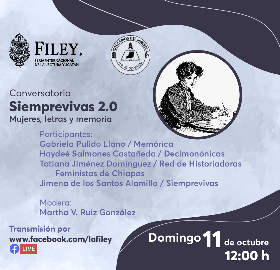 Tomando como inspiración la labor de las feministas yucatecas, y con el objetivo de difundir los trabajos de recuperación de biografías y obras literarias de mujeres mexicanas del siglo XIX, como una forma de crear narrativas y hacer memoria, la FILEY en coordinación con la asociación de Bibliotecarios del Sureste, presentará el conversatorio “Siemprevivas 2.0: mujeres, letras y memoria”.