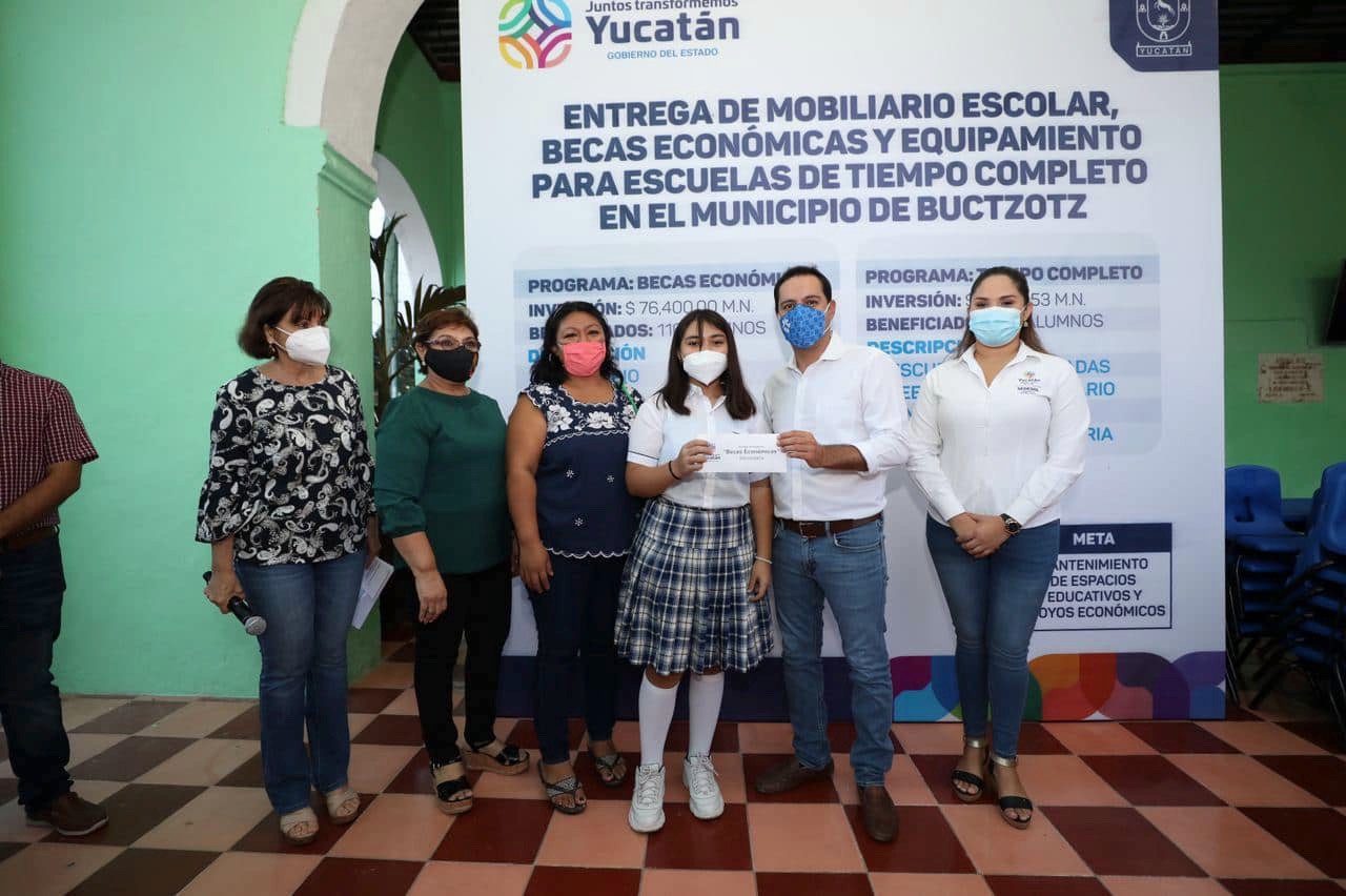 Junto con la titular de la Secretaría de Educación del estado (Segey), Loreto Villanueva Trujillo, el Gobernador realizó la entrega de las Becas Económicas que benefician a 16,122 estudiantes de primaria y secundaria, a fin de apoyar con los gastos de su educación y aliviar con ello la economía familiar. Tan sólo en el municipio de Buctzotz se benefician a 116 alumnos con este programa estatal.