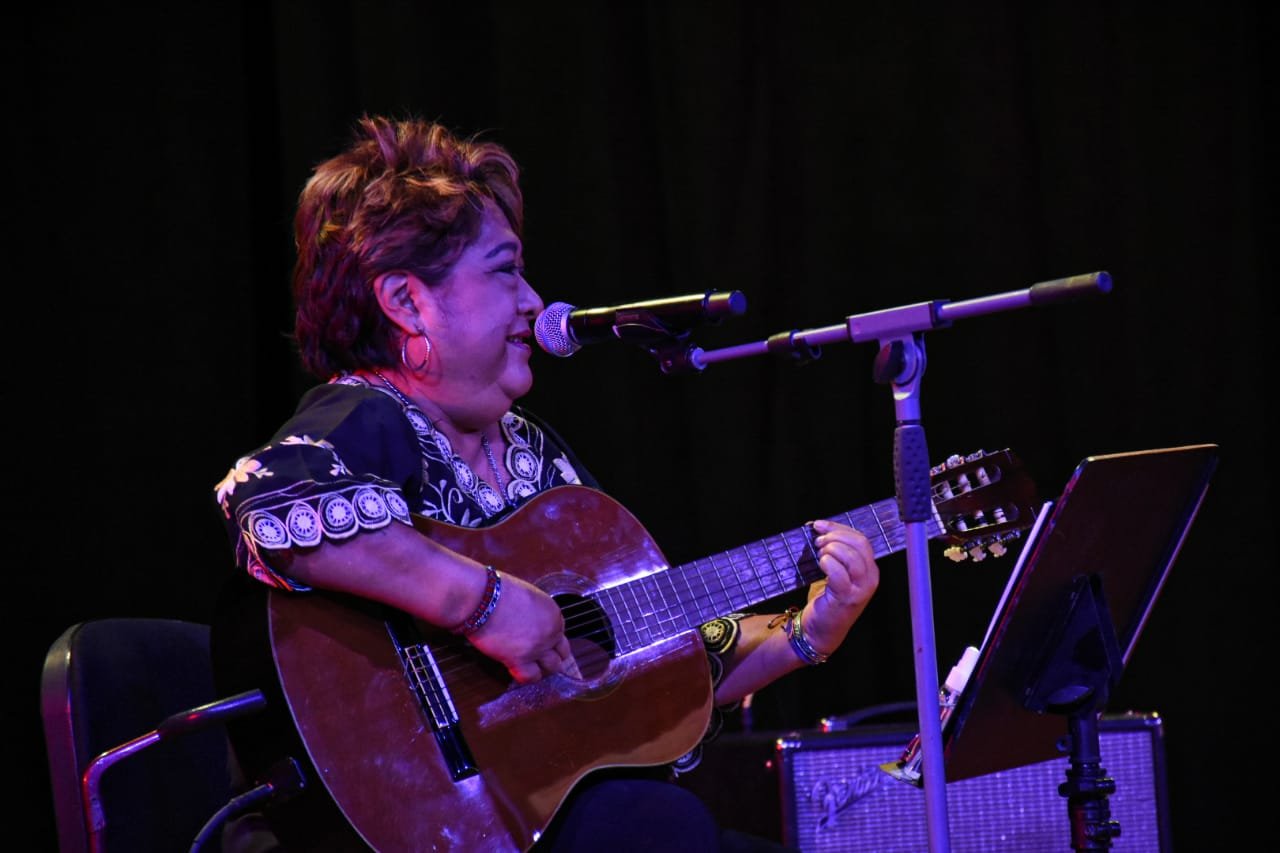 Angélica tomó su guitarra con el tema “Ay Señor”. La noche terminó cuando todas entonaron “Llévelo, llévelo”, de María San Felipe, una oda al mercado San Benito y agradecimientos por la invitación a regresar a los escenarios y compartir su música en el Mérida Fest, cuidando los protocolos de seguridad establecidos por las autoridades y de manera responsable.