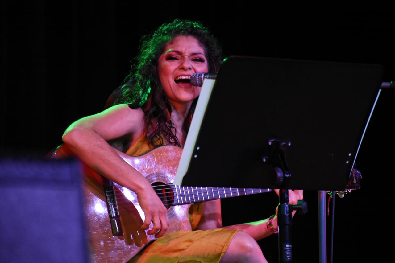 “Hace muchos ayeres que la mujer canta sus rolas acompañada por su guitarra y hoy estamos con ustedes, tres trovadoras en una noche para enseñar nuestras canciones” expuso Angélica al comenzar el concierto y regalar “Me quemas”.