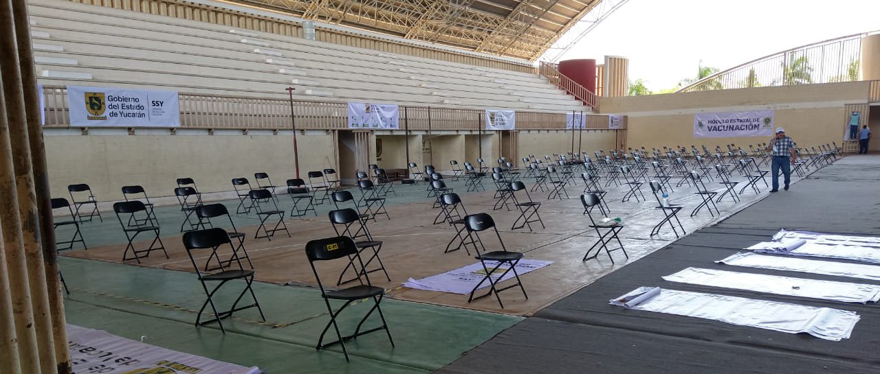 A su vez, el polideportivo de la Inalámbrica (avenida Antonia Jiménez Trava-calle 90 y calle 45 col. Inalámbrica) fue acondicionado con 600 sillas, toldos y materiales aportados por el Ayuntamiento de Mérida, para el proceso de atención a las personas que acudirán a ese punto.