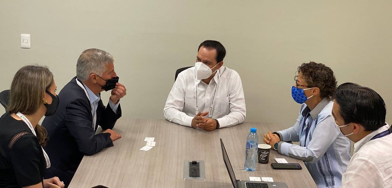 Más tarde, el Gobernador sostuvo un encuentro con Greg O’Hara, fundador y socio gerente en Grupo Certares, que es una de las agrupaciones de inversionistas más grandes especializadas en turismo, quien resaltó su interés en buscar oportunidades de financiamiento para implementar algunos proyectos turísticos en el estado que aporten beneficios sociales, pero al mismo tiempo generen derrama económica y empleos para los yucatecos.
