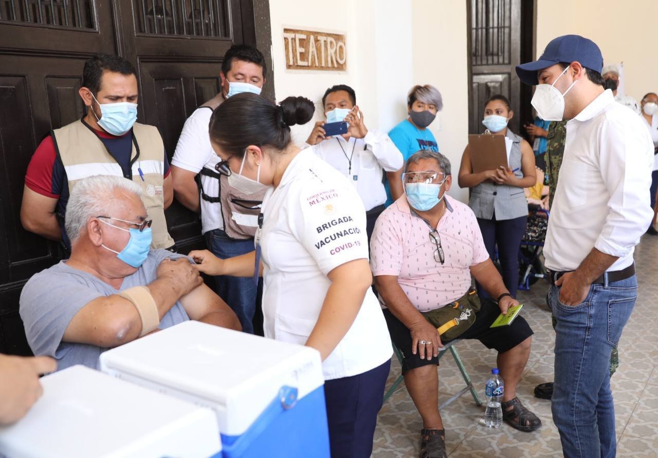 Junto con el Director del Centro de Salud de la SSY, Carlos Iván Saucedo Lizalde, Vila Dosal constató que, la aplicación de la segunda dosis de la farmacéutica Sinovac a los adultos de 60 años y más se lleve de forma ordenada, proceso que, simultáneamente se lleva a cabo en 14 municipios más del interior del estado.