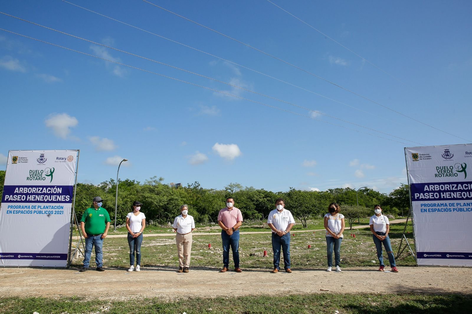 Mérida,24 de julio- En una suma de esfuerzos entre el Ayuntamiento, el Gobierno del Estado y el Club Rotarios de Mérida, esta mañana se llevó a cabo el inicio del proyecto de arborización “Duelo Verde Rotario”, que encabezó el alcalde Renán Barrera Concha y cuya meta incluye la plantación de 2 mil árboles en el Parque Lineal Metropolitano “Paseo Henequenes”.