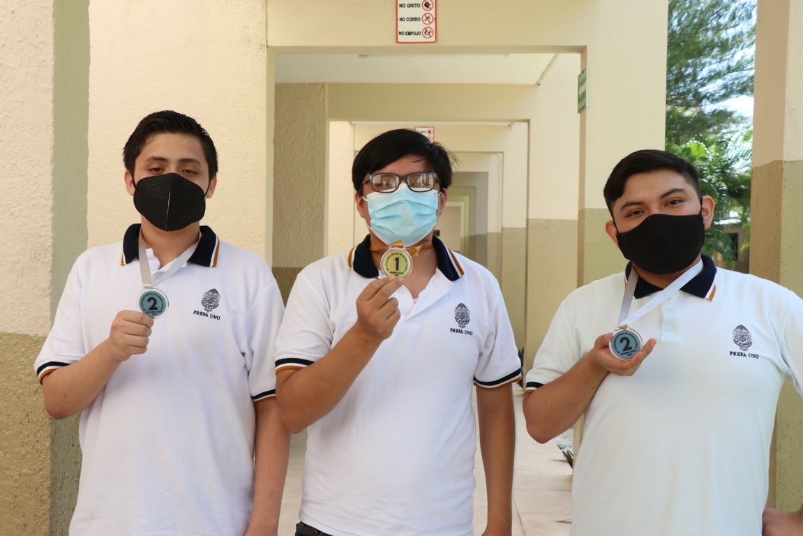 Mérida, Yuc, a 11 de agosto.- Alumnos de la Escuela Preparatoria Uno de la Universidad Autónoma de Yucatán (UADY) representarán al estado a nivel nacional, después de haber obtenido dos medallas de oro, dos de plata y tres de bronce de entre 139 estudiantes de todos los subsistemas que imparten educación media superior, durante el XXXIV Concurso Estatal de Química Básica 2021.