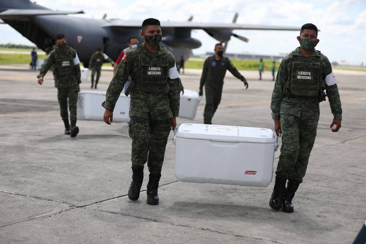 Por indicaciones del Gobernador Mauricio Vila Dosal, el responsable del Programa estatal de Vacunación Universal de la SSY, Alejandro Díaz Sánchez acudió a la Base Aérea Militar (BAM) Número 8 para supervisar la llegada del nuevo lote de vacunas, abordo de la aeronave C-130 de la Fuerza Aérea Mexicana matrícula 3616, proveniente de la Ciudad de México, que tocó territorio estatal a las 14:52 horas.