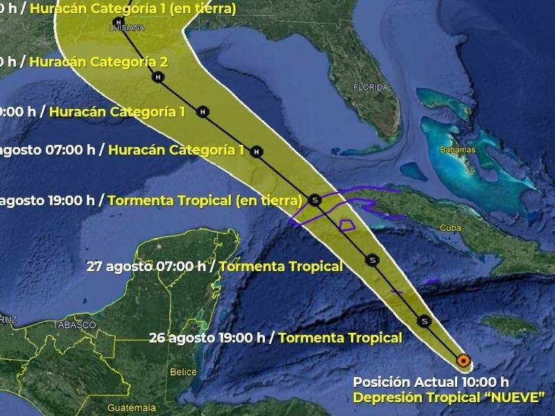 La depresión tropical Nueve se formó sobre el Mar Caribe y se espera que convierta en una tormenta tropical en la noche del jueves, antes de fortalecerse como un huracán cerca del oeste de Cuba o el sureste del Golfo de México, dijo el Centro Nacional de Huracanes de Estados Unidos (CNH).