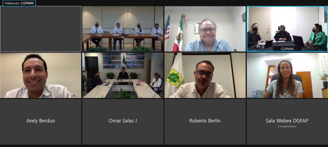 Mérida, Yuc, 1 de sept.- El Gobernador Mauricio Vila Dosal sostuvo una reunión de trabajo con la Coordinadora General de Puertos y Marina Mercante, Capitán de Altura Ana Laura López Bautista y el director de Fomento y Administración Portuaria de la Secretaría de Marina (Semar), Capitán de Navío Carlos Alberto Gómez Martínez, así como con el director general de la Administración Portuaria Integral (API) de Progreso, Jorge Carlos Tobilla Rodríguez, para dar seguimiento al Proyecto de Ampliación y Modernización de Puerto de Altura de ese puerto yucateco.