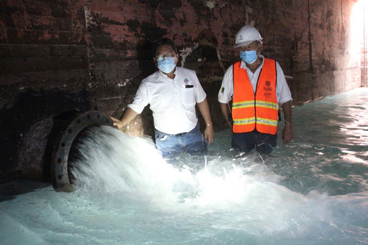 De acuerdo con las instrucciones del Gobernador Mauricio Vila Dosal, el cárcamo recibió por parte de la Japay un mantenimiento mayor en sus equipos de bombeo y se sellaron varias fugas, evitando el desperdicio casi 10 millones de litros de agua al día.