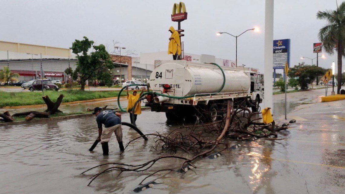 En el departamento de Ayuntatel (999-924-40-00) se recibieron 9 reportes de levantamiento de árboles caídos en los fraccionamientos Del Sur, Ciudad Caucel y Gonzalo Guerrero; desagüe de calles inundadas en el fraccionamiento Castilla Cámara y en las colonias Centro, Granjas y Reparto Granjas y fallo en luminaria en el fraccionamiento San Pedro Cholul.