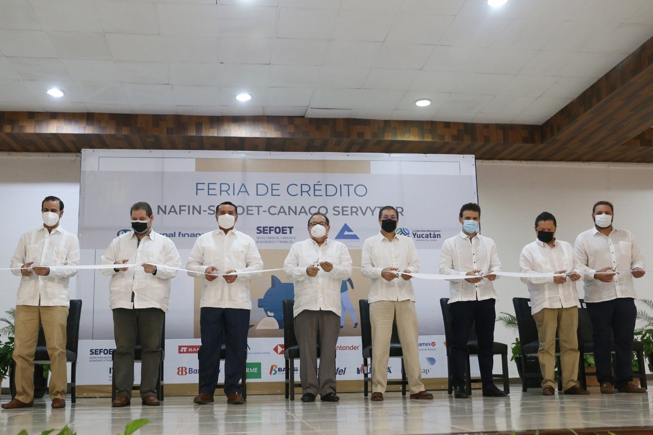 El evento, organizado por la Secretaría de Fomento Económico y Trabajo (Sefoet), Nacional Financiera (Nafin) y la Cámara Nacional de Comercio, Servicios y Turismo (Canaco-Servytur) de Mérida, reunió en un mismo lugar los fondos que ofrecen Nafin y el Banco Nacional de Comercio Exterior (Bancomext), a través de la banca comercial e instituciones no bancarias, y las opciones de financiamiento que brindan el Gobierno del Estado y el Ayuntamiento de esta ciudad.