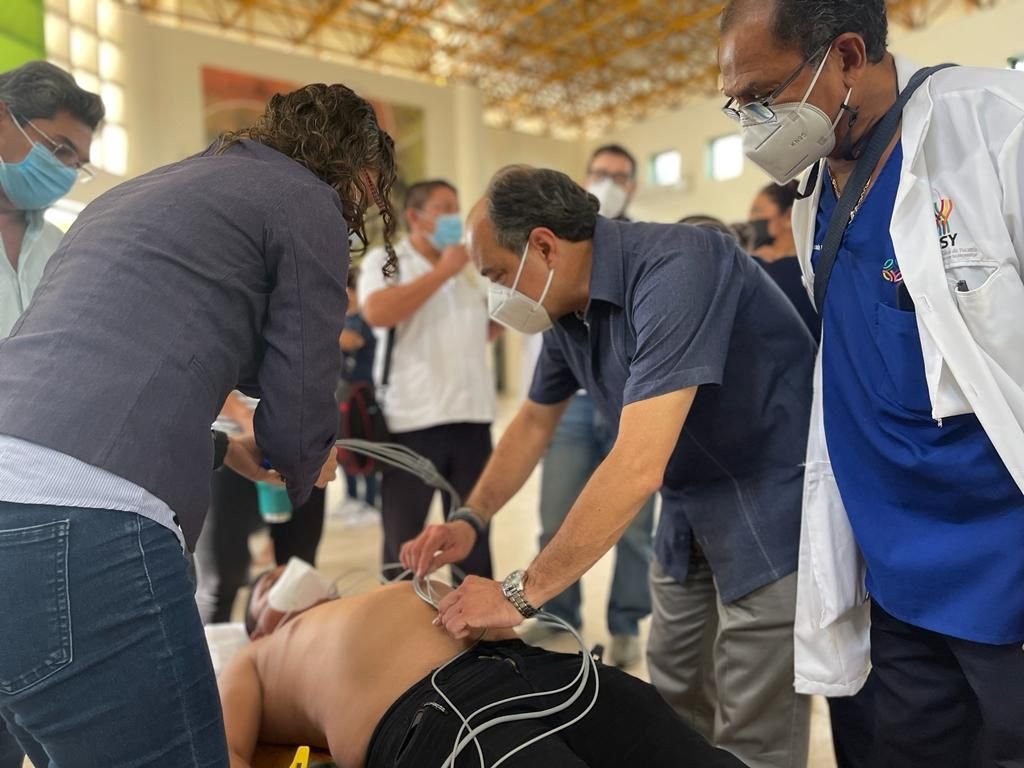 Posteriormente, Javier Ademar Zaldívar, médico adscrito a la SSY, ofreció la capacitación sobre Código Infarto Yucatán, durante la cual abordó el uso del Electrocardiógrafo y contó con apoyo de profesionales en el tema; de igual manera, se supervisaron los Centros de Salud Urbanos de Mérida y Santa Rosa, donde los especialistas encabezados por el doctor Patricio Heriberto Ortiz Fernández constataron los avances de esta estrategia y reconocieron la labor de las y los profesionales de la salud en beneficio de la población yucateca.