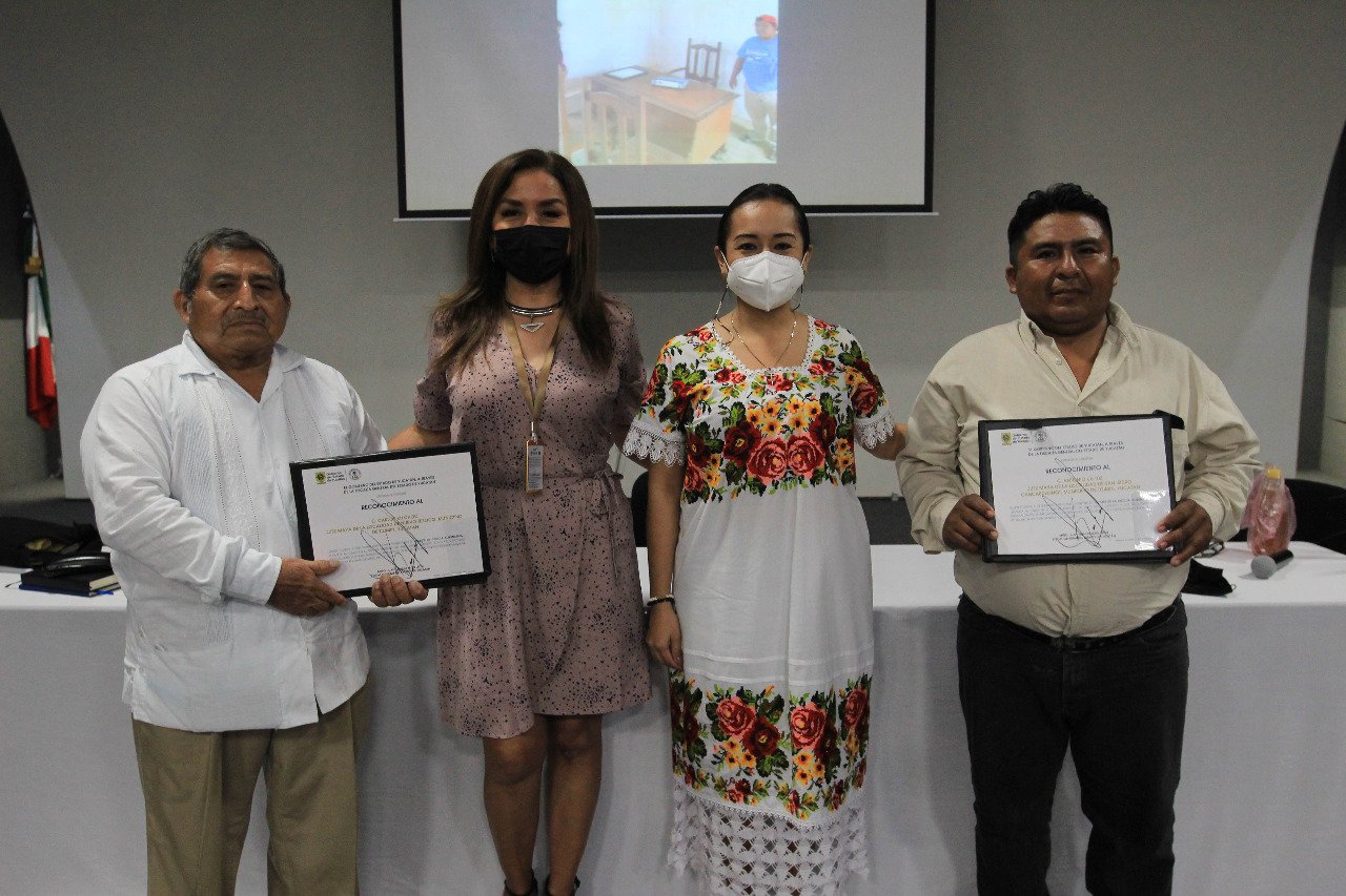Luego, se otorgó reconocimientos a 15 personajes que han fortalecido y preservado la cultura maya, a través de expresiones artísticas o gastronómicas, y a través del Cifal Mérida, de la Organización de Naciones Unidas (ONU), se entregó a comisarios ejidales compendios con los 17 Objetivos de Desarrollo Sustentable en maya, para que contribuyan con el cuidado y la preservación del planeta.