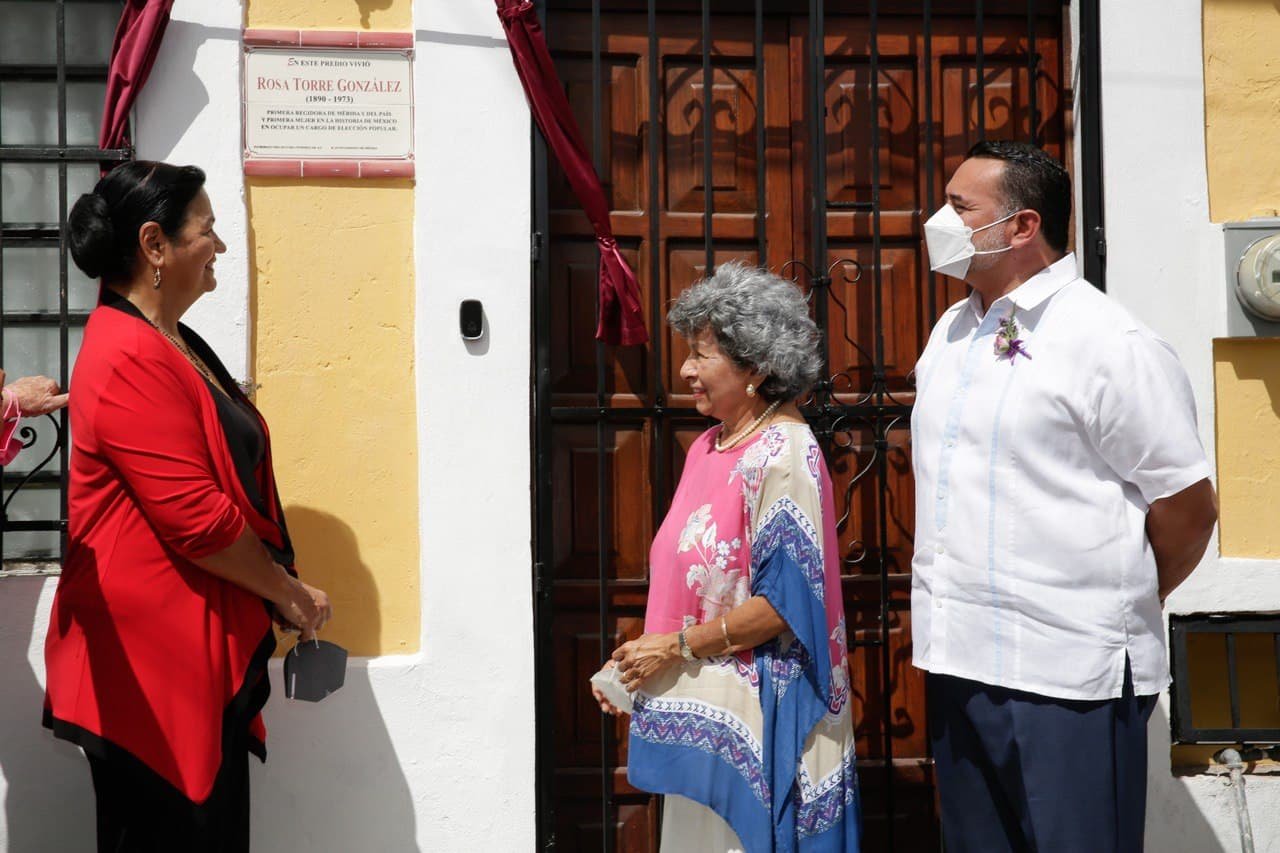 Durante su discurso, efectuado durante la develación de la placa conmemorativa en el predio que habitó Rosa Torre González, en el barrio de Santa Ana, el Primer Edil señaló que esta actividad es una oportunidad para reflexionar la lucha de esta mujer por ocupar un puesto de elección popular, siendo un hecho inédito en esa época que una mujer ocupara el cargo de regidora en el Ayuntamiento de Mérida.