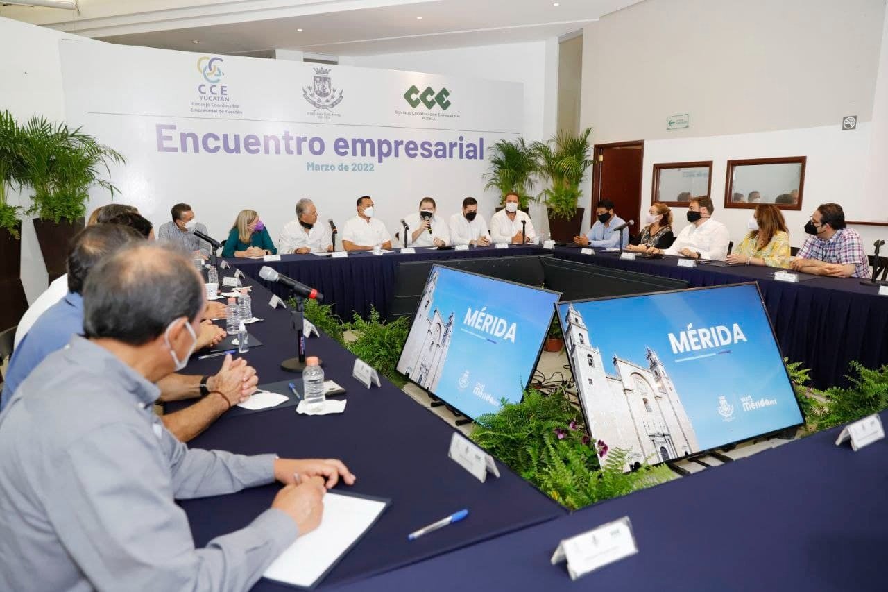 Mérida, Yuc a 11 de marzo- La reactivación económica del Municipio luego de meses difíciles a causa de la pandemia, está avanzando gracias al trabajo conjunto entre los diferentes sectores de la sociedad que han sentado las bases para tomar las mejores decisiones para el crecimiento de Mérida. Es por ello que en estos tiempos es cuando más se valora la inversión y, sobre todo, el que distingan a la capital yucateca como el destino ideal para invertir y hacer negocios en México, afirmó el Alcalde, Renán Barrera Concha, durante una reunión de trabajo con integrantes del Consejo Coordinador Empresarial (CCE) de Puebla y Yucatán.