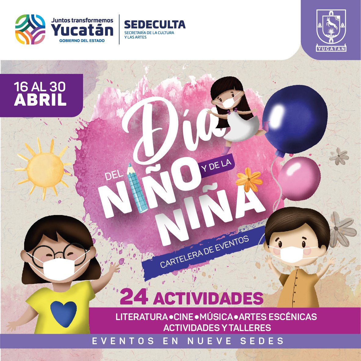 Mérida, Yuc, 11 de abril- Espectáculos de música, teatro y danza, además de proyecciones de cine infantil y talleres impartidos por destacados artistas de la literatura e ilustración, son tan solo algunas actividades que la Secretaría de la Cultura y las Artes (Sedeculta) tiene en el programa especial para celebrar a las niñas y niños de la entidad.