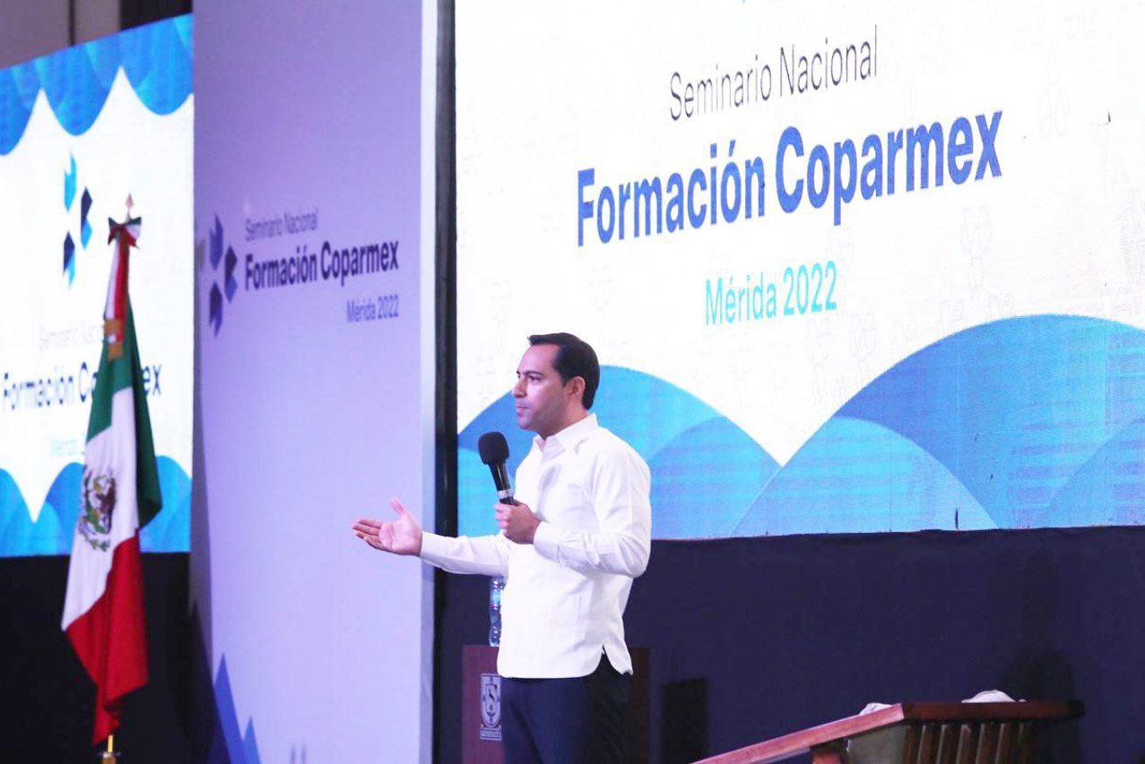 En el marco del Seminario Nacional de Formación de Coparmex Mérida 2022, Vila Dosal presentó los diversos programas y proyectos que se lleva a cabo en los rubros de economía, seguridad, medio ambiente, salud y movilidad, para detonar el desarrollo del estado.
