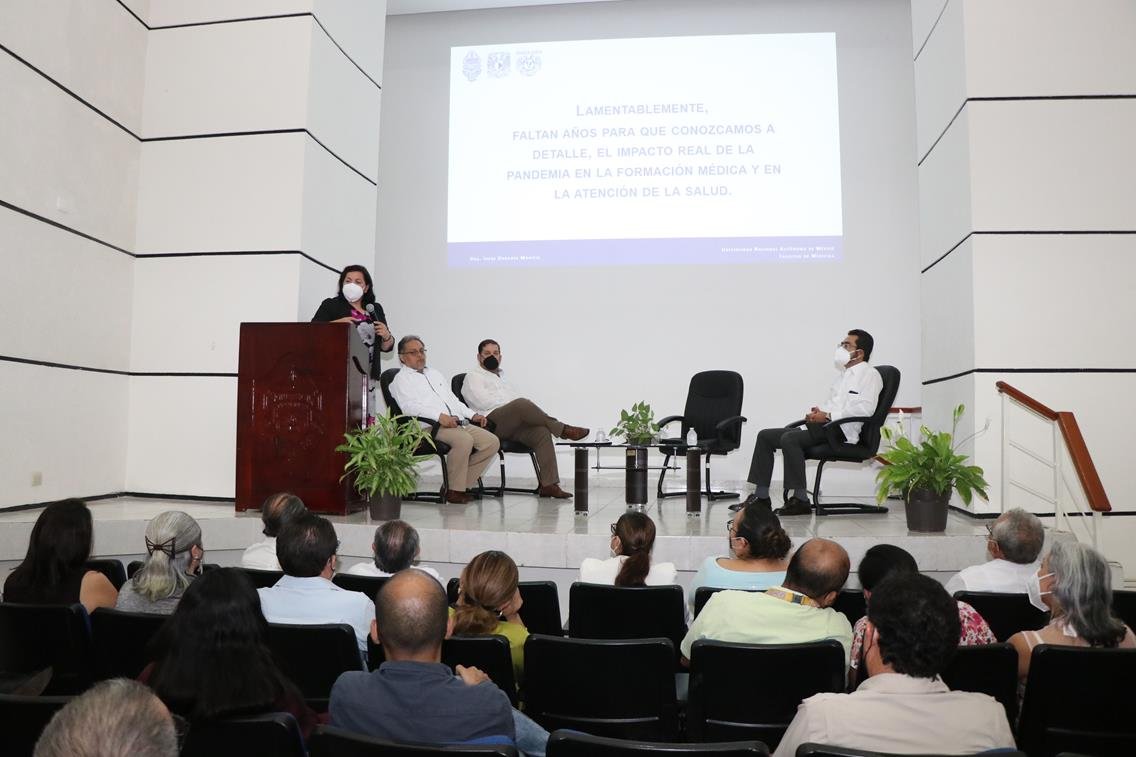 Durante la mesa panel “Perspectivas de la salud después de la pandemia”, realizada en el marco del 189 aniversario de la Facultad de Medicina de la Universidad Autónoma de Yucatán (UADY), la secretaria general de la Facultad de Medicina de la Universidad Nacional Autónoma de México (UNAM), Irene Durante Montiel, recordó que la pandemia abrió el camino para que educación en medicina digital.