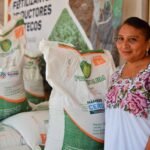 “Estos sacos de fertilizantes los voy a llevar a mi parcela para ponérselos a mis hortalizas y a mis elotitos que están creciendo, así aprovecho la temporada de lluvia que hará que desarrollen mejor mis cultivos, pues nos ayuda mucho que este apoyo llegue a tiempo para ser aprovechado al 100%”, señaló la productora.