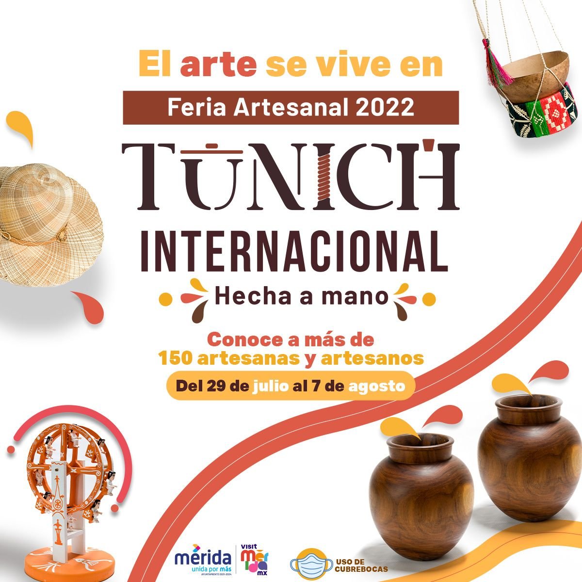 Finalmente, las y los interesados pueden obtener mayores informes con respecto a la Feria Artesanal Tunich 2022 en las redes sociales de VisitMéridaMx y en la página www.merida.gob.mx/tunich/ .