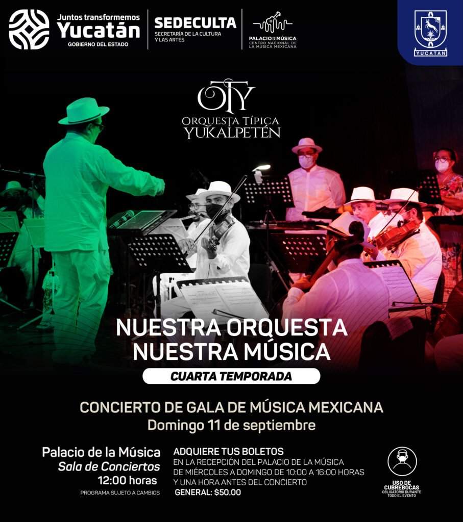 Mérida, Yuc, 7 de sept. – Con huapangos, sones y joropos, la Orquesta Típica Yukalpetén (OTY) celebrará las Fiestas Patrias en un concierto de gala, este domingo 11, a las 12:00 horas, en el Palacio de la Música – Centro Nacional de la Música Mexicana, como parte del compromiso del Gobernador Mauricio Vila Dosal, de abonar a la oferta cultural y artística del estado.