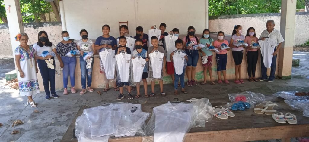 Los 22 pequeños que integran el coro, 11 niñas y 11 niños, que dirige el maestro Ildelfonso May Caballero, recibieron sus uniformes que portarán en su presentación durante la inauguración de la cumbre y al cierre del evento, el 22 y 23 de septiembre, como parte del mensaje que tienen las nuevas generaciones con el cuidado de la madre tierra.