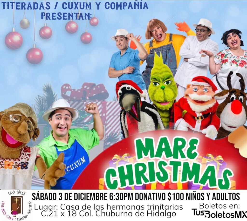 El sábado 3 de diciembre, a las 19:00 hrs., se presentará el Grupo Titeradas y el Cómico Regional Cuxum con todo su elenco, a beneficio de las niñas de la Casa Hogar Luisa María Clar, de las Madres Trinitarias. El donativo es de $ 100.00 y todo lo que se reúna será para que estas jóvenes mujeres sigan yendo a la escuela, tengan un hogar y logren encontrar su camino.
