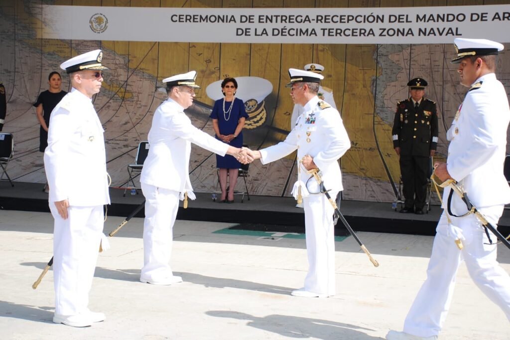 Junto con el almirante Abraham Eloy Caballero Rosas, comandante de la VII Región Naval, de la que depende la XIII zona, la funcionaria atestiguó los honores correspondientes al oficial saliente, el izado de la insignia del entrante y las demás formalidades de la Ordenanza Naval.