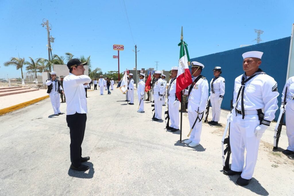 Progreso, Yuc, 1 de junio.- El Gobernador Mauricio Vila Dosal y el el comandante de la XIII Zona Naval, vicealmirante Gabriel Alberto Báez López, encabezaron la conmemoración por el Día de la Marina, en la que reconocieron la valiosa labor que realizan los hombres y las mujeres que, desde esta institución, salvaguardan los mares y las costas nacionales.