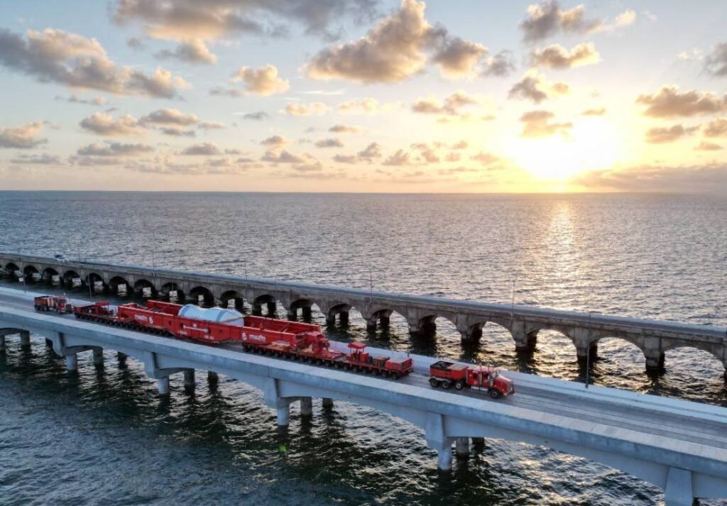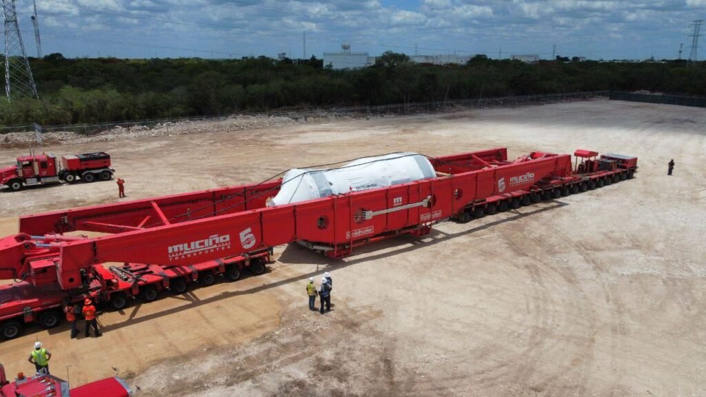 Luego de arribar al muelle 7 del Puerto de Altura de Progreso en la embarcación BBC Direction, proveniente de la ciudad de Savananh, Georgia, en Estados Unidos, ya se encuentra en el estado la primera de las 3 piezas que se estarán empleando para alimentar las plantas de ciclo combinado Mérida y la de Valladolid, las cuales cuentan con un importante avance en su edificación y se prevé estén listas antes de finalizar el 2024, para brindar suficiencia energética al estado para los próximos 25 o 30 años.