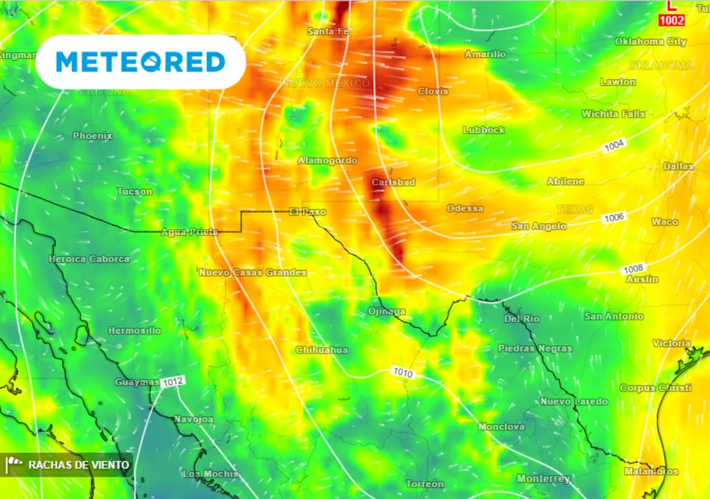 La influencia de los frentes fríos 15 y 16 y gradientes de presión barométrica a nivel regional, darán origen a vientos de entre 60 y 80 km/h con tolvaneras en Sonora, Chihuahua y Coahuila, y de entre 40 y 60 km/h en Baja California y Baja California Sur. Por otra parte, se espera “surada” con vientos de entre 40 a 60 km/h en Nuevo León, litoral de Tamaulipas y Veracruz.