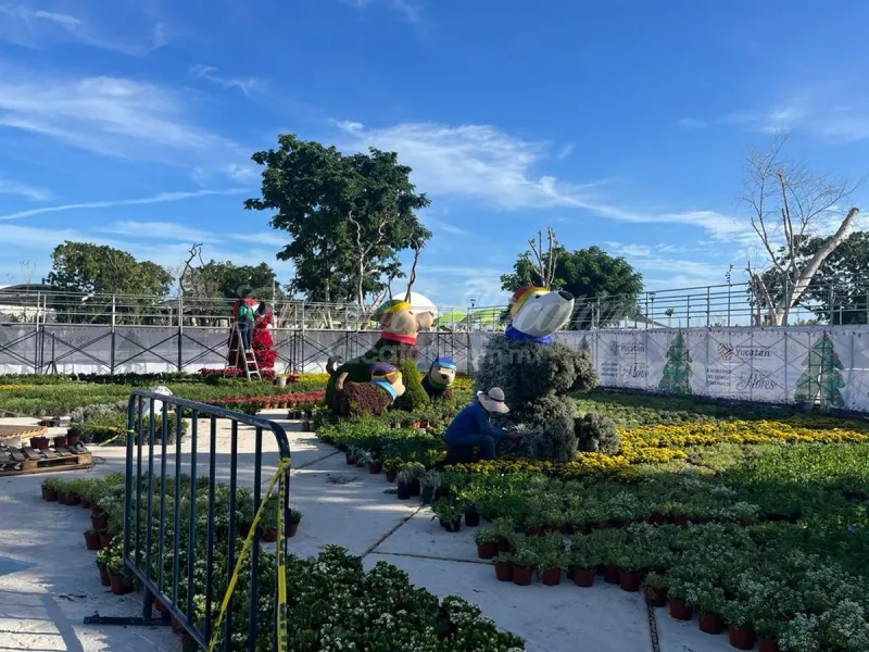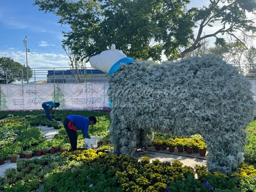 MÉRIDA.- Osos, perros, renos y otros animales hechos con flores y plantas comienzan a tomar forma en el Gran Parque La Plancha, donde a partir del sábado 9 de diciembre podrá visitarse el Paseo Navideño de las Flores 2023.