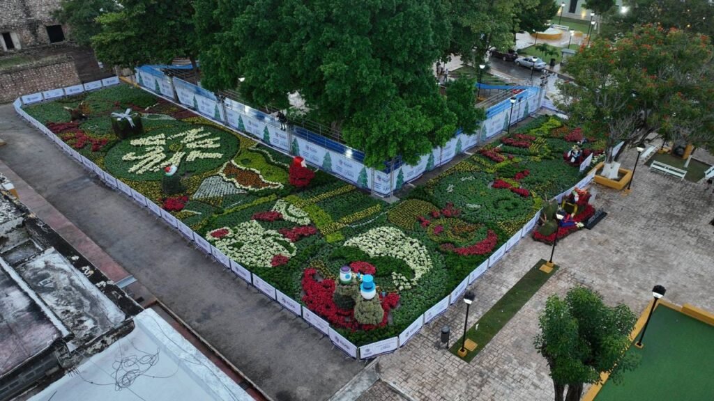 En Mérida, en la Explanada cívica del Parque de La Plancha, considerado el mejor de México, la gente pudo observar un tapete vegetal con figuras como los Reyes Magos, un nacimiento, así como esculturas vegetales que incluyeron una piñata, osos polares y el personaje principal de la Navidad, Santa Claus.