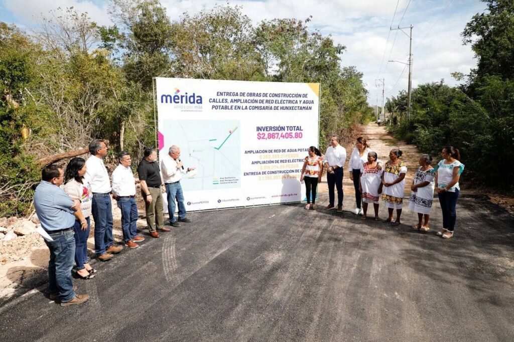 En la comisaría de Hunxectamán, el Alcalde entregó las obras de red eléctrica, agua potable y construcción de calles del programa “Rezago Cero” para garantizar un crecimiento parejo para todas las familias del Municipio: “estas obras representan un trabajo en equipo en el que los propios ciudadanos asumen las decisiones para mejorar su entorno”.