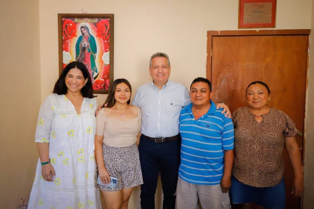 En visita a la familia Cob Chalé, de la comisaría de Xcunyá, el Presidente Municipal felicitó a la estudiante de sexto semestre de contabilidad, Elvia Pamela, quien, con un promedio de 96, forma parte del programa Excelencia Universitaria.