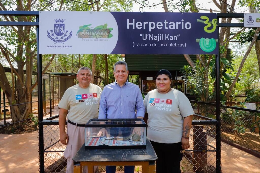 Mérida, Yuc, 20 de abril.- Una de las secciones más concurridas del Parque Zoológico del Bicentenario «Animaya» es el herpetario rústico U’Najil Kan (La casa de las culebras), un espacio que ha sido objeto de mejoras por parte del Ayuntamiento que encabeza Alejandro Ruz Castro, para brindar mayor comodidad y satisfacción a los amantes de la naturaleza.