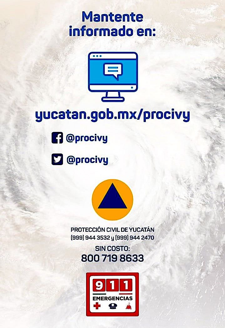 Expuso que, los hoteleros yucatecos tienen experiencia en este tipo de eventos y están preparados para cubrir la atención de los turistas que deseen pernoctar en el estado por avance de este fenómeno tropical. Informó que, se han distribuido en todos los hoteles afiliados información en varios idiomas para mantener informados a los huéspedes.