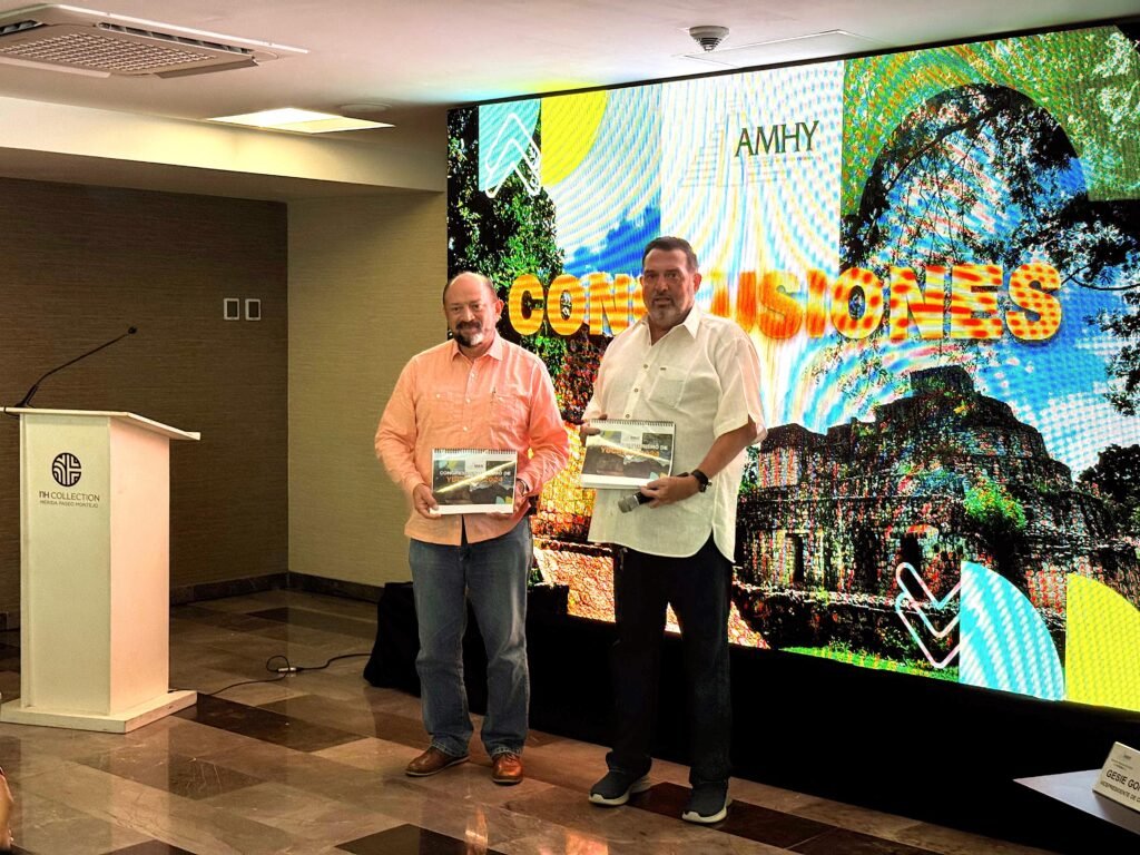 Mérida, Yuc. 18 de sept.- En el marco del Congreso de Turismo, organizado por la AMHY, Flota Ocampo recibió de Juan José Martín Pacheco, presidente del organismo, dos documentos impresos con 65 propuestas generadas durante el evento para que el gobernador electo, Joaquín Díaz Mena, y el invitado las analicen.