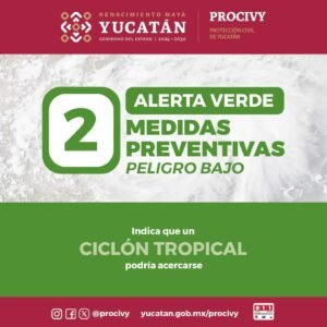 “Seguiremos pendientes del comportamiento de este fenómenos tropical, de sus efectos y cualquier indicación de los sistemas nacional y estatal de protección civil y los alertamientos que sean emitidos y difundidos por estos y para la atención de sus posibles efectos a través de todas las dependencias operativas del Ayuntamiento de Mérida y acorde a las instrucciones de la Presidenta Municipal.”