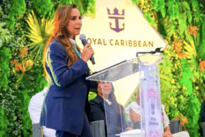 Mediante conexión digital en un evento realizado en el centro de convenciones de Chetumal donde estuvo la gobernadora, Mara Lezama, y empresarios de la zona sur, el presidente y CEO de Royal Caribbean Internacional, Michael Bayley, explicó que el proyecto promete elevar a Quintana Roo y la zona de Mahahual como un referente turístico moderno y sostenible, con una capacidad diaria de 21 mil huéspedes y se prevé que el turismo de cruceros en la región crezca desde 2.6 millones de visitantes en su primer año y hasta más de 5 millones para 2033.