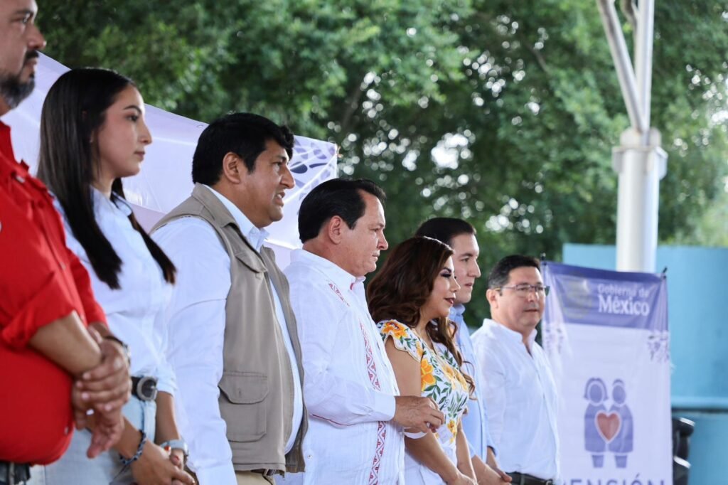 Tixkokob, Yuc 11 de oct.- El Gobernador del Estado, Joaquín Díaz Mena, junto con el delegado en Yucatán de la Secretaría de Bienestar del Gobierno Federal, Rogerio Castro Vázquez, encabezaron el inicio del registro al programa federal Pensión Mujeres Bienestar, con el que las yucatecas de 63 a 64 años, y de 60 a 64 para comunidades indígenas y afromexicanas, podrán acceder al apoyo económico que les permita gozar de autonomía económica, como parte de un reconocimiento a la labor que han realizado a lo largo de sus vidas.