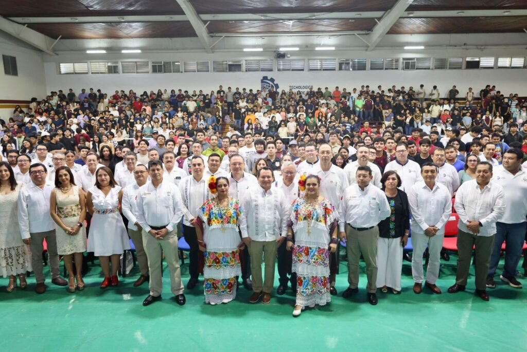 «Con este convenio, alumnos de 33 tecnológicos podrán hacer prácticas profesionales, servicio social, recibir educación Dual, así como herramientas que van a generar un mayor conocimiento, para que en el futuro puedan desempeñarse laboralmente en el Tren Maya o en otra empresa. Finalmente, el Gobernador alentó a las y los estudiantes a seguir preparándose para alcanzar sus sueños, recordando que hace 30 años egresó de esta institución educativa, hasta convertirse en Gobernador de Yucatán.