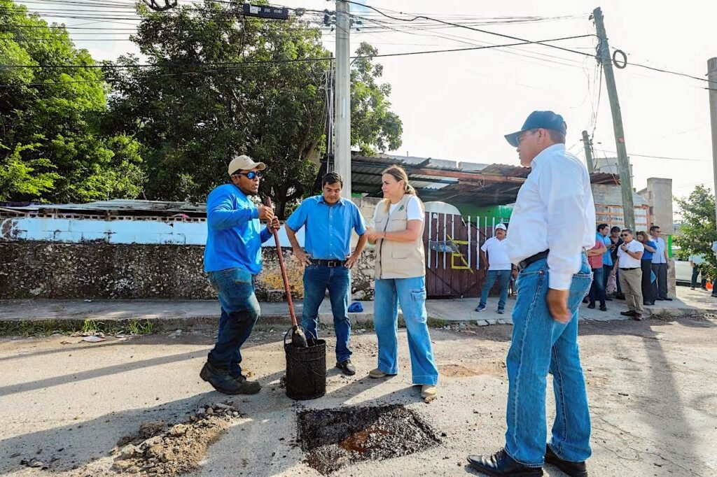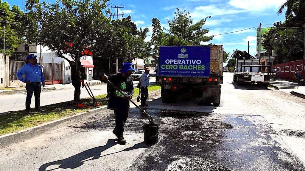 Las cuadrillas de bacheo trabajan de manera incansable desplegadas en toda la ciudad, ya que es prioridad para el Ayuntamiento de Mérida controlar los baches a la brevedad.