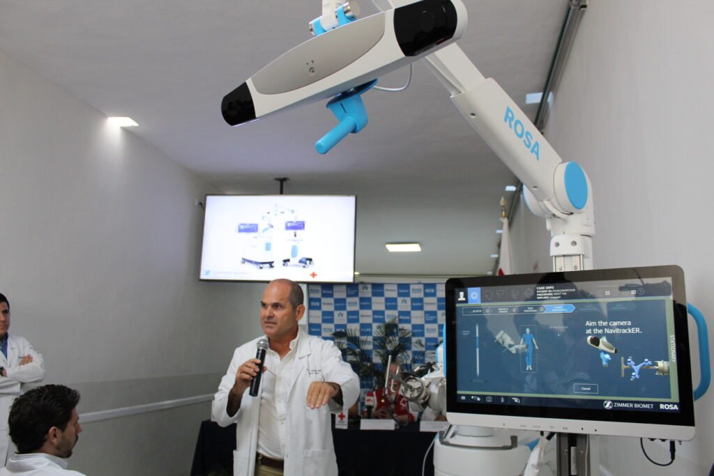 Ante el personal médico y medios de comunicación, el Jefe de Enseñanza del Hospital de Ortopedia Dr. Felipe Cámara Arrigunaga destacó que la alianza con la empresa permitirá acceder a la precisión de los procedimientos quirúrgicos a través de la tecnología robótica con la que los pacientes tendrán una disminución de las complicaciones, mejora en la movilidad y una reducción en los tiempos de recuperación.