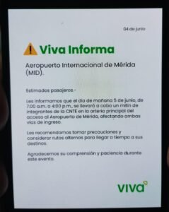 Eduardo May.- Mérida, Yuc. 4 de junio.- Las principales aerolíneas comerciales que conectan a esta ciudad están avisando a sus pasajeros en rutas matutinas anticipar su arribo a la terminal aérea, ante la marcha magisterial de la CNTE que pretende bloquear el acceso al aeropuerto por al menos cinco horas este jueves.